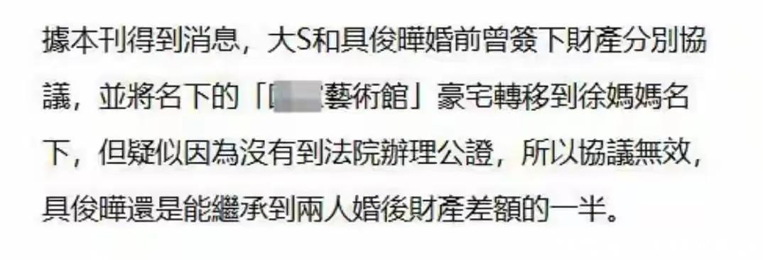 这套房产大S生前曾签过协议,同意过户到母亲名下,可由于没有去公证,导到协议无效,现在房产变也成了大S的遗产。